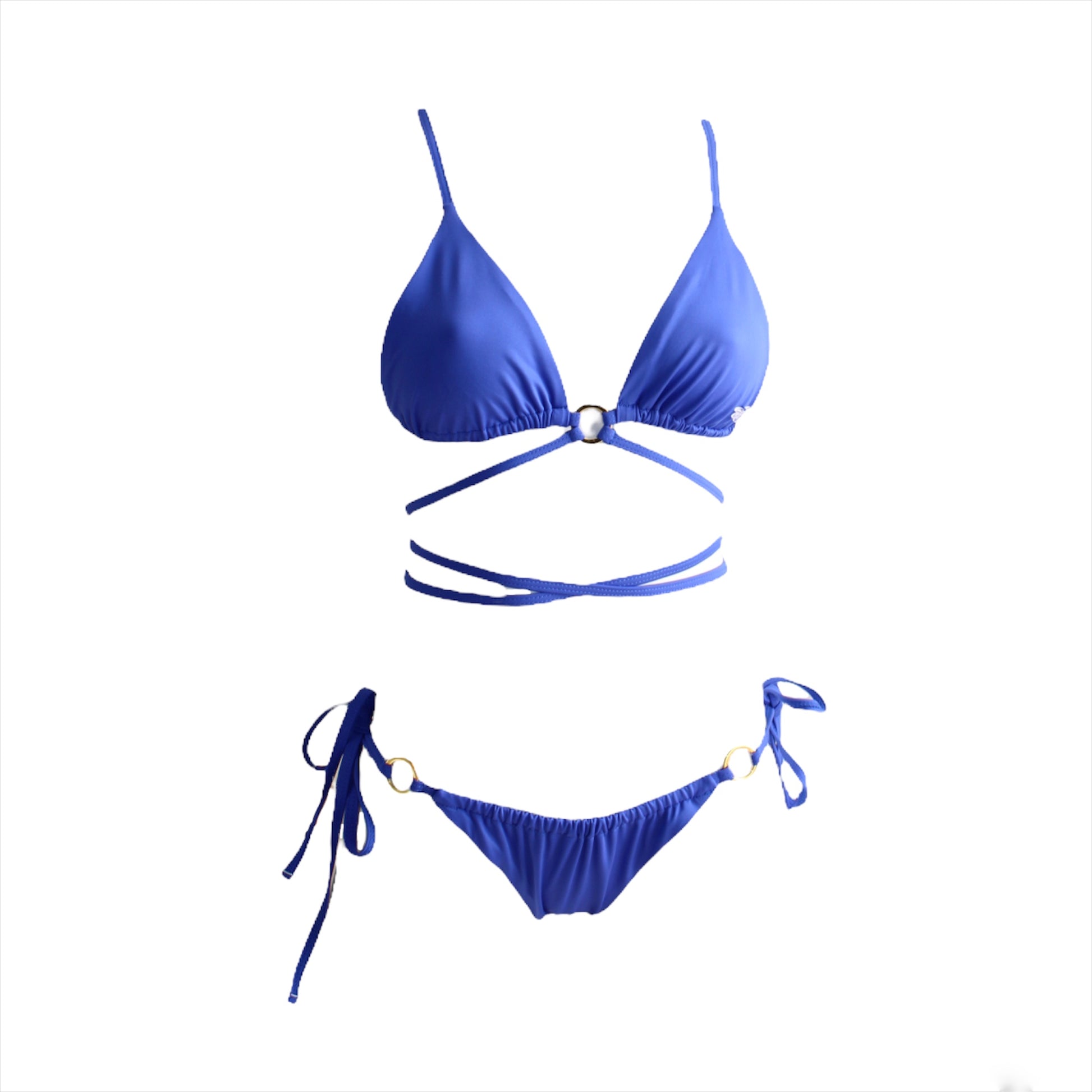 Bottom corte mini con aros resistentes al cloro y sales y amarres largos, trasero cachetero