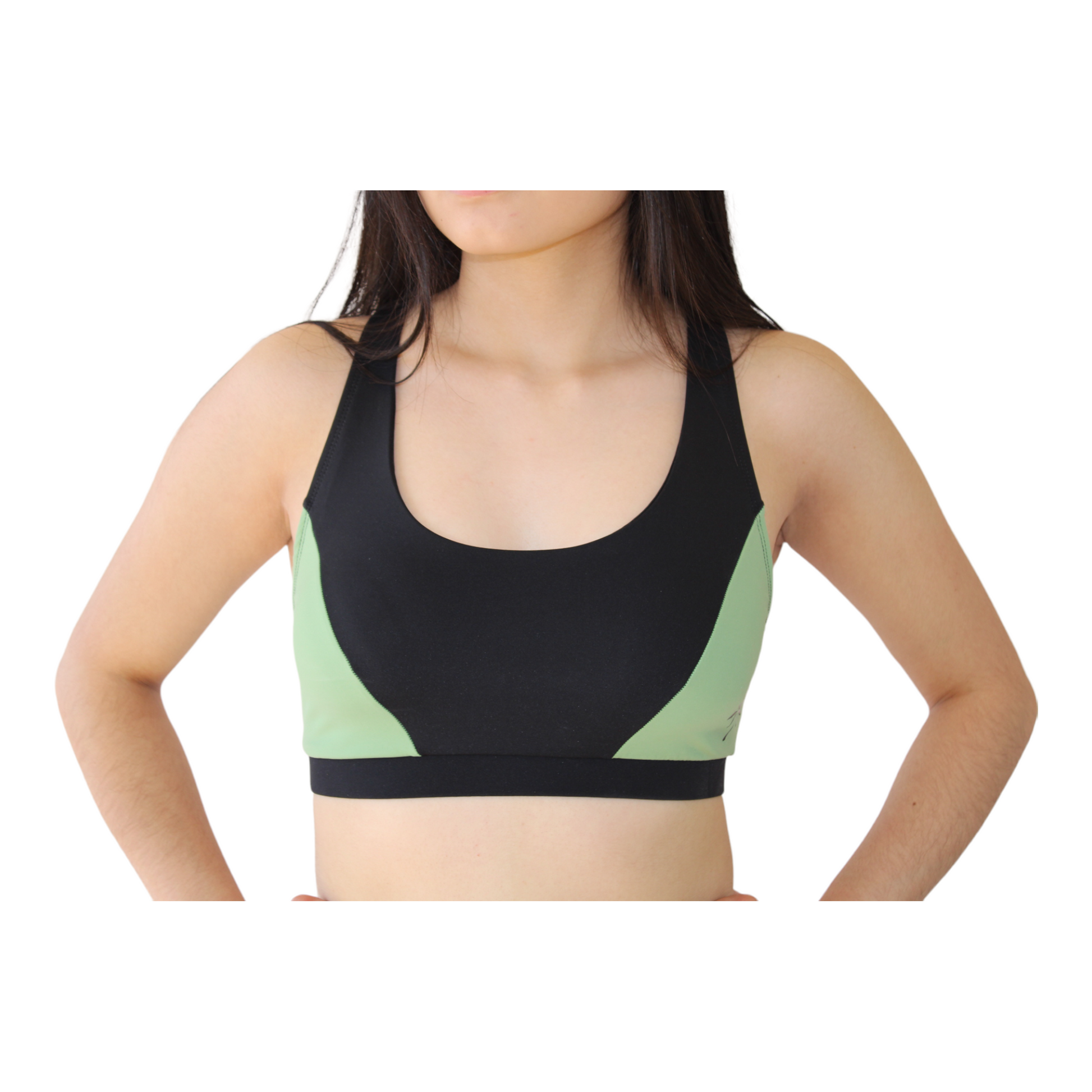 Top bicolor, sin copas, tela elástica.