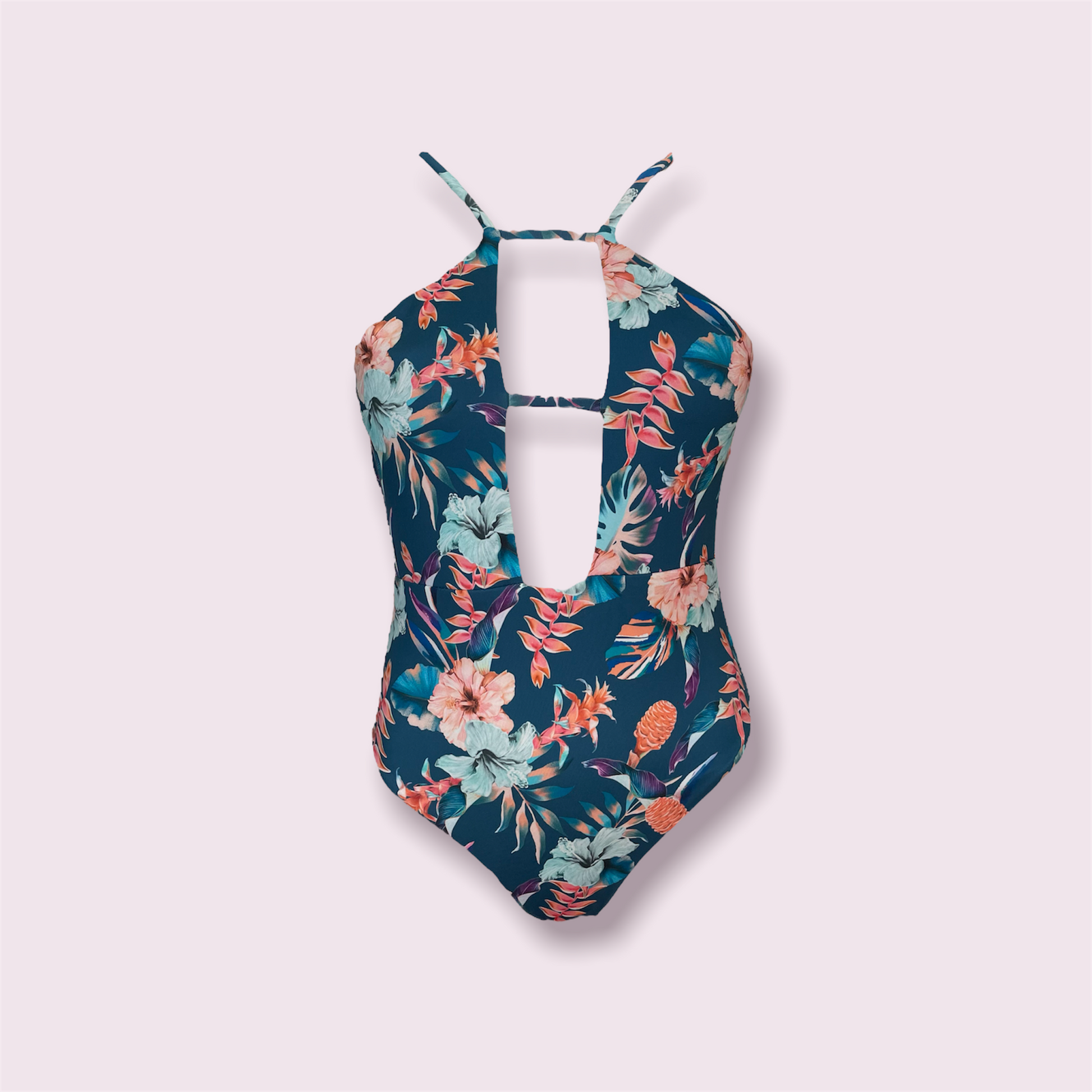 Traje de baño completo con ajustes en hombros y espalda descubierta