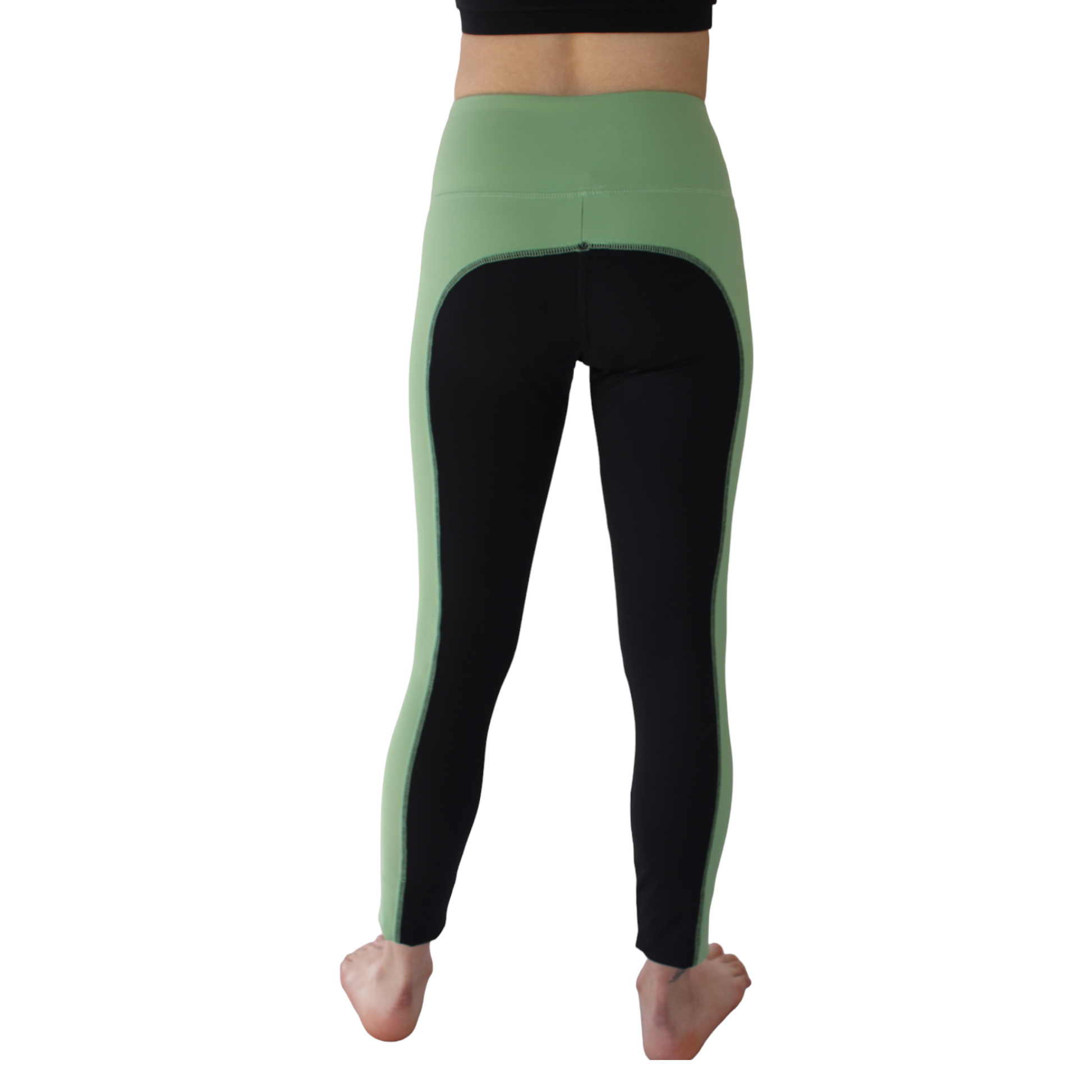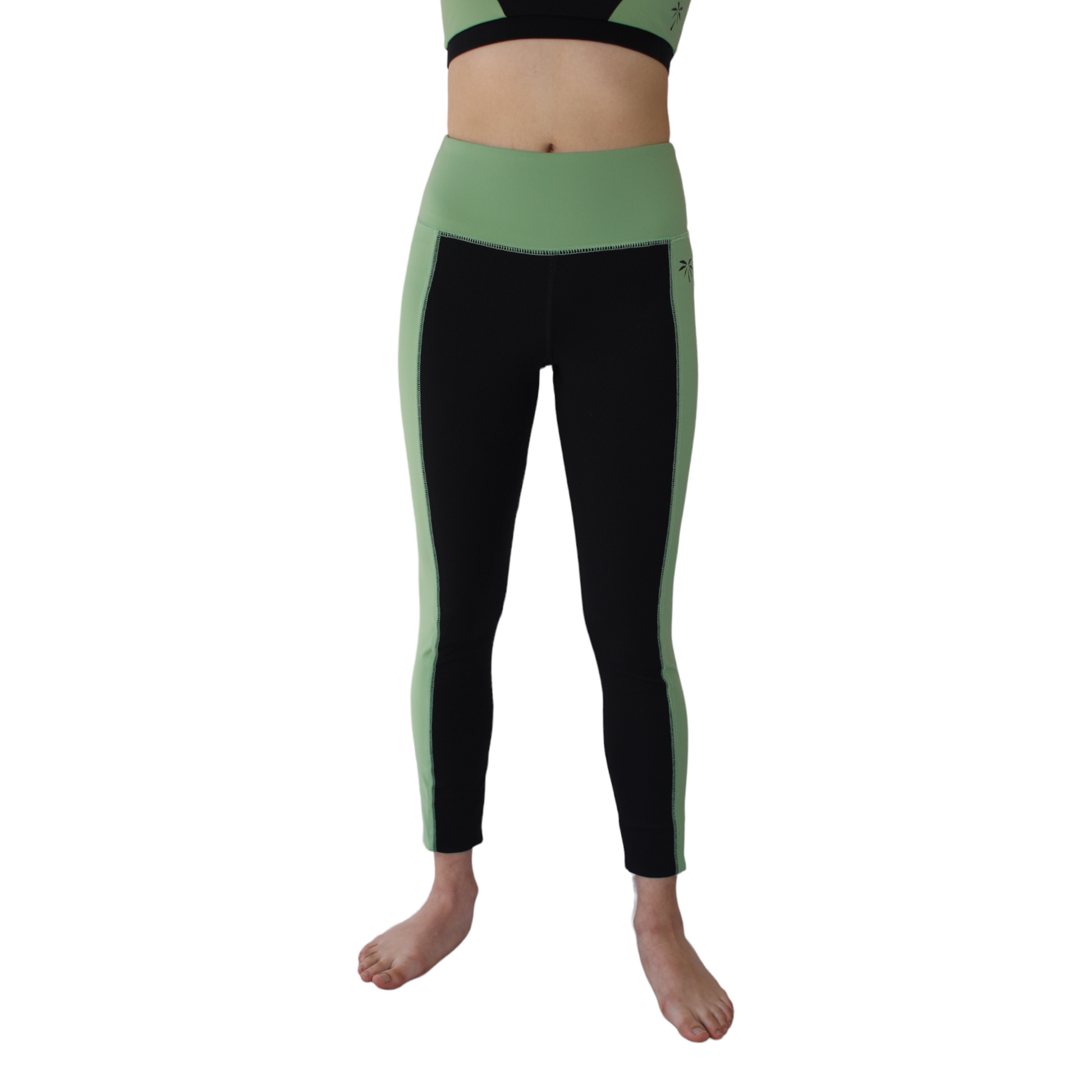 Legging bicolor negro con verde, a la cintura, con tela elástica que se adapta perfectamente al cuerpo
