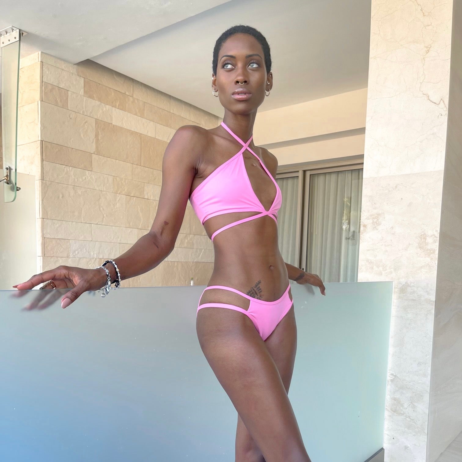 El SET MARIPOSA Rosa presenta un diseño único de 2 piezas, fabricado con tejido suave y resistente, con esos cruces en el top y Bottom en color rosa que está en tendencia. Esta creación moderna y elegante te hará lucir y sentirte genial en la playa.