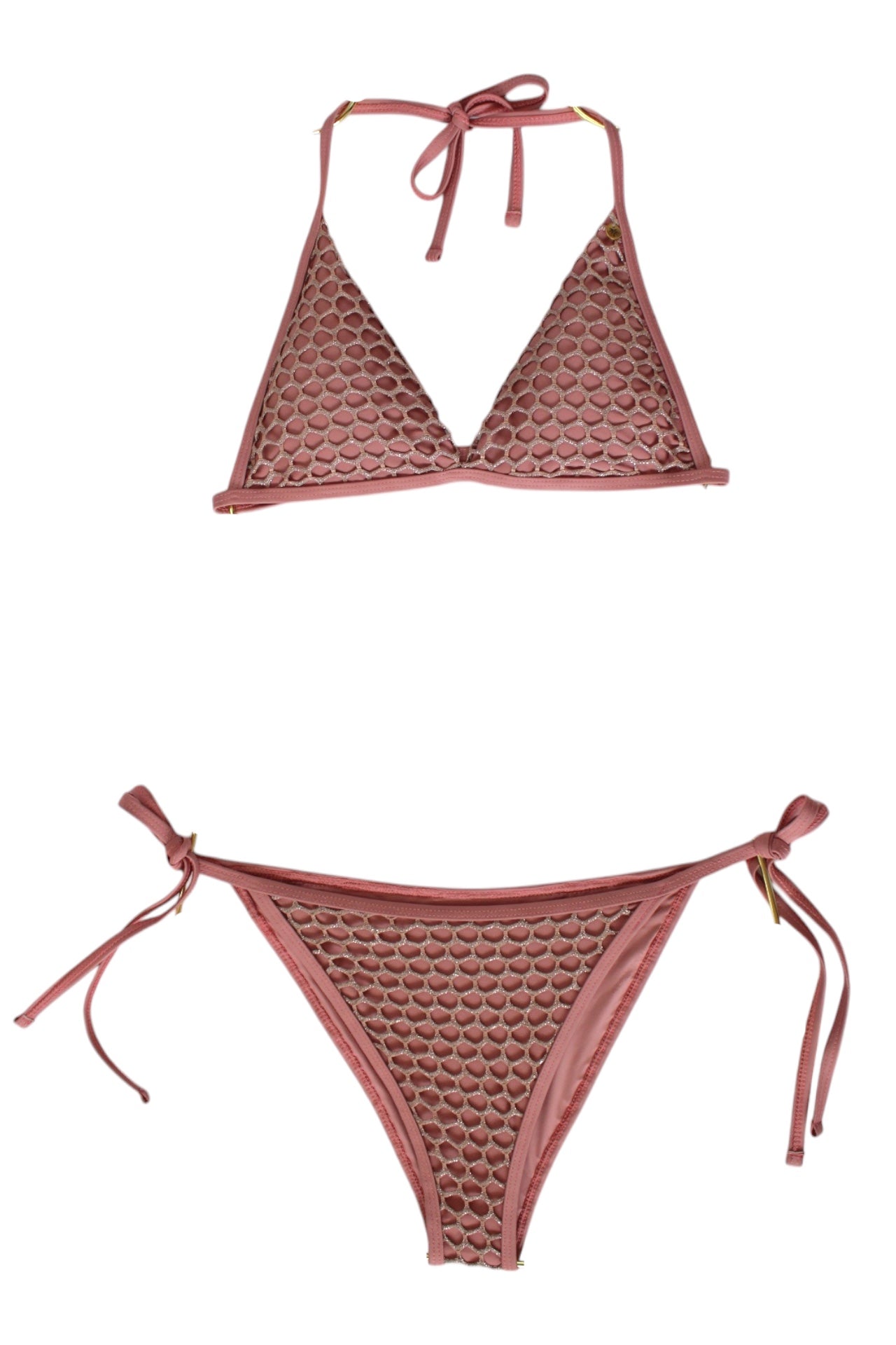 Un top sofisticado y una panty de corte perfecto se unen en una combinación rosa y dorado con acentos dorados que capturan todas las miradas. Este set no solo viste el cuerpo: enciende la seguridad que llevas dentro.