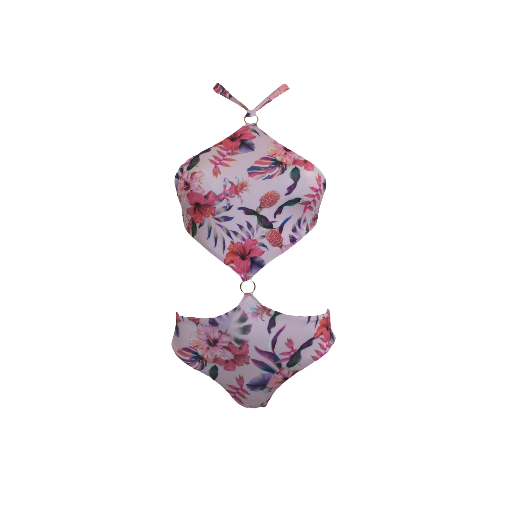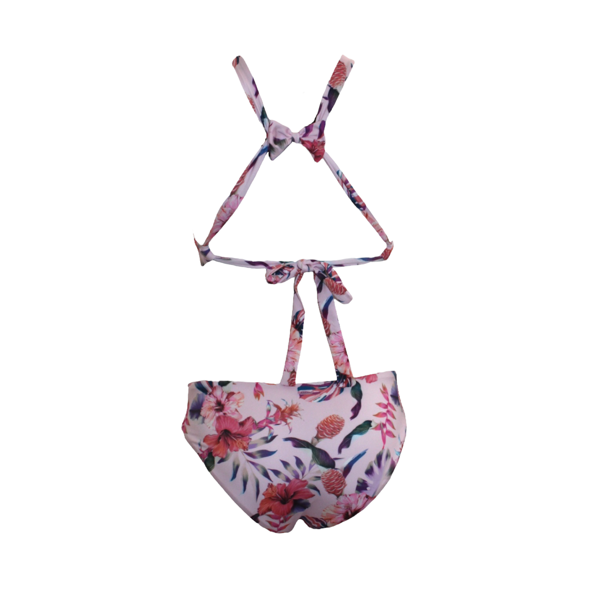 Traje de baño completo con aro en cuello y cintura, parte trasera con moño