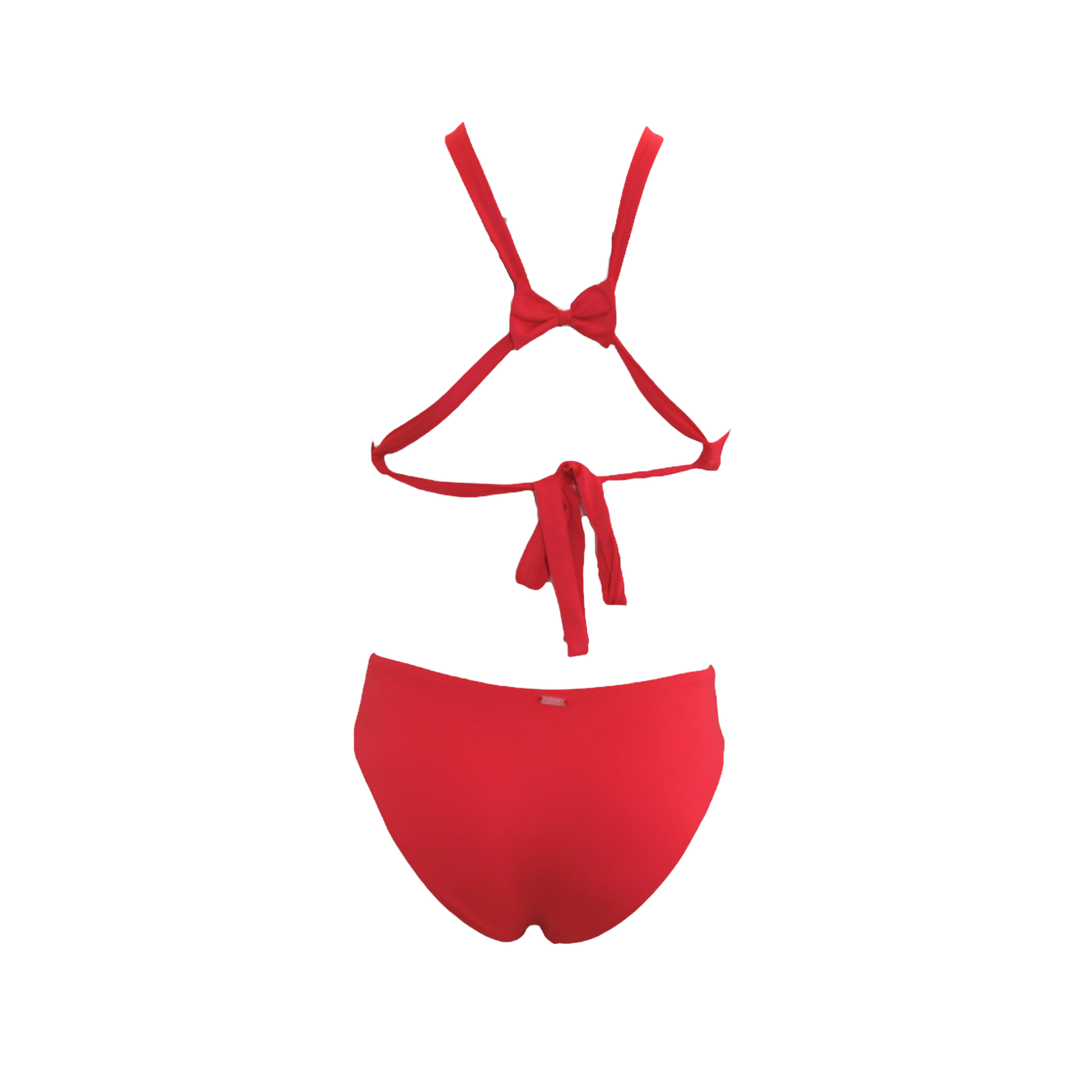 Traje de baño completo con aro en cuello y cintura, parte trasera con moño