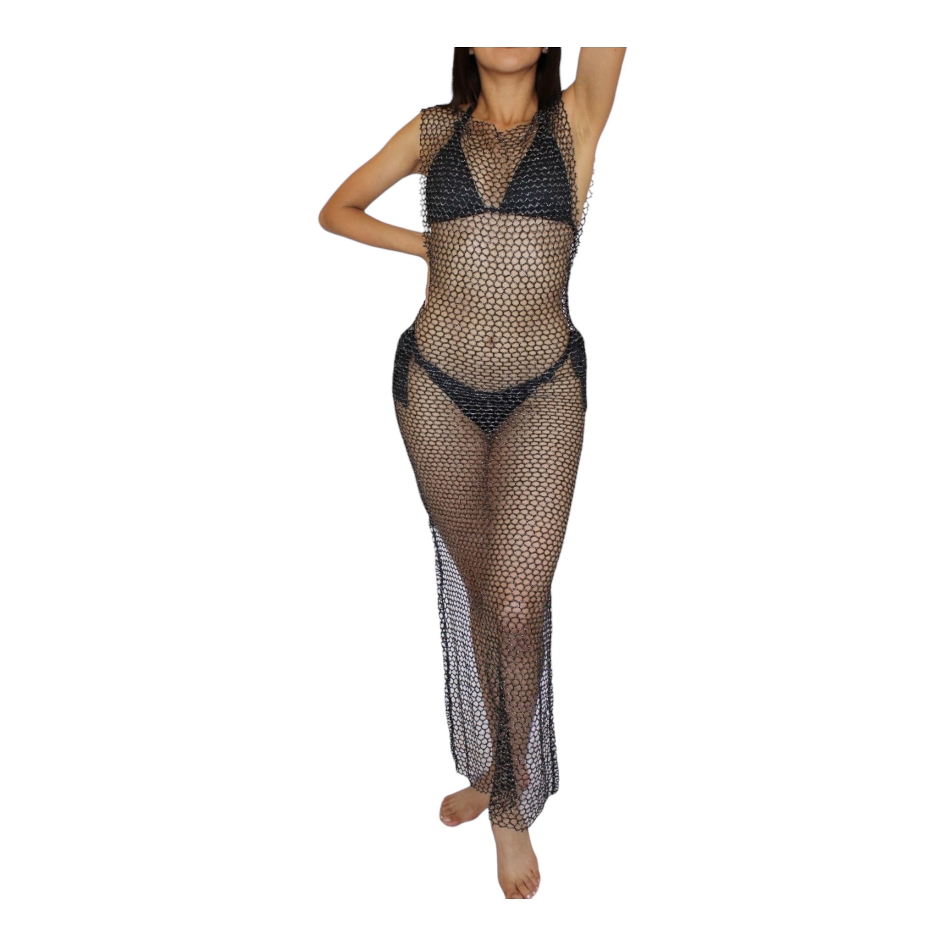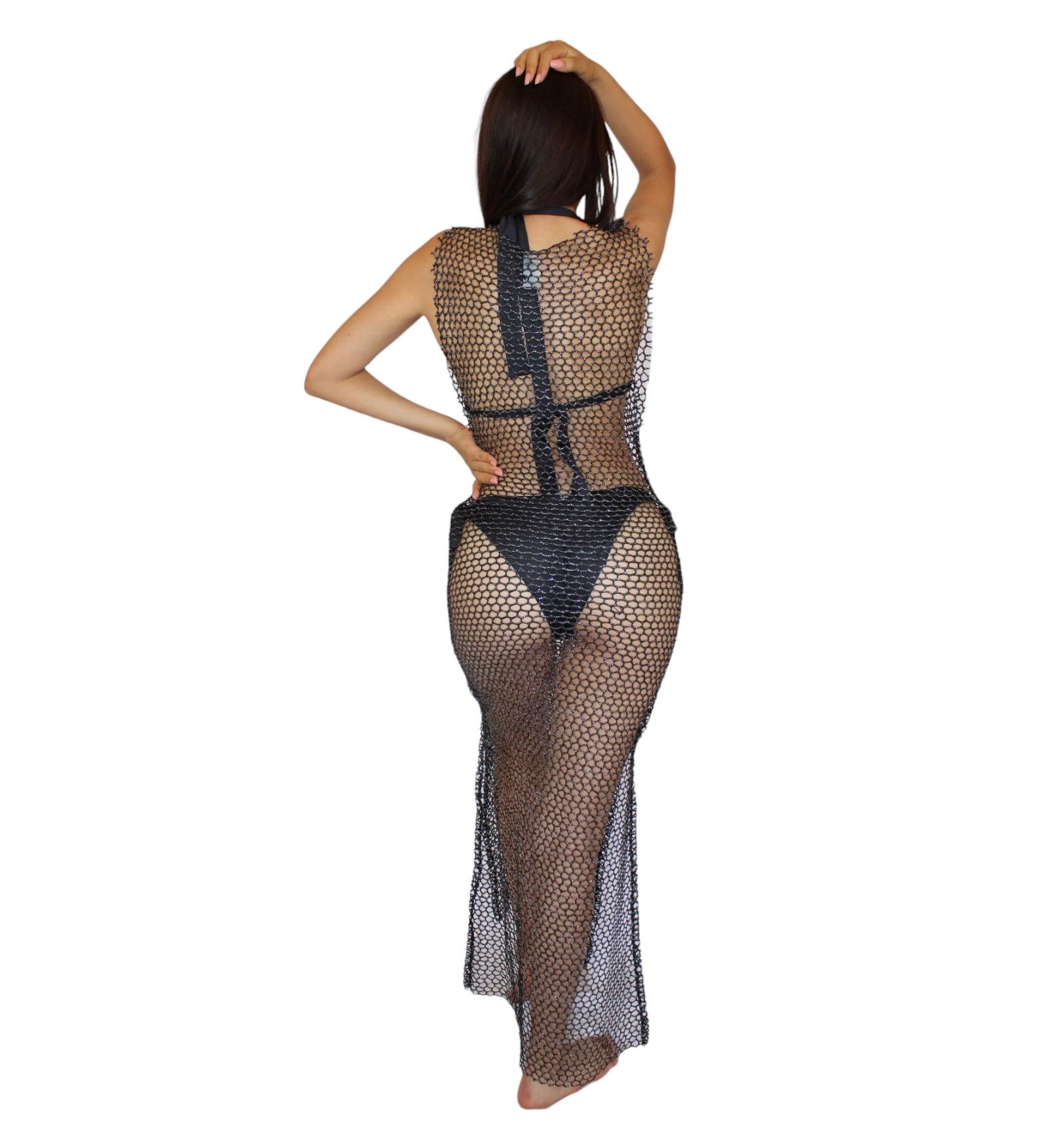 Este vestido largo pareo de red en color negro es perfecto para cualquier ocasión. Combina con distintas prendas para un look versátil. Confeccionado con material de alta calidad, este vestido te mantendrá cómoda y con estilo. Su diseño elegante y único te hará destacar en cualquier evento. ¡Hazte con él ahora!